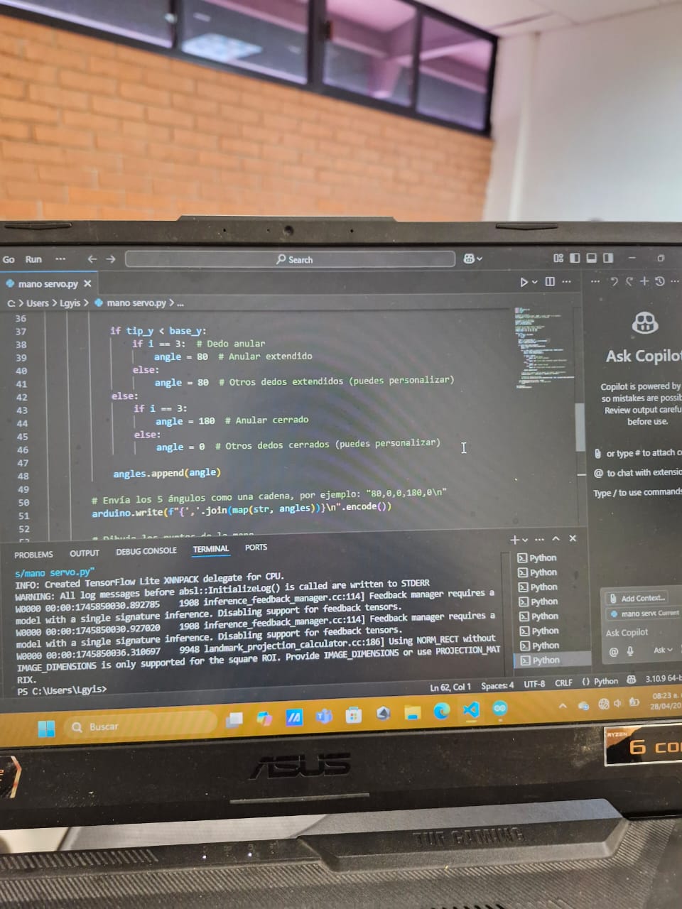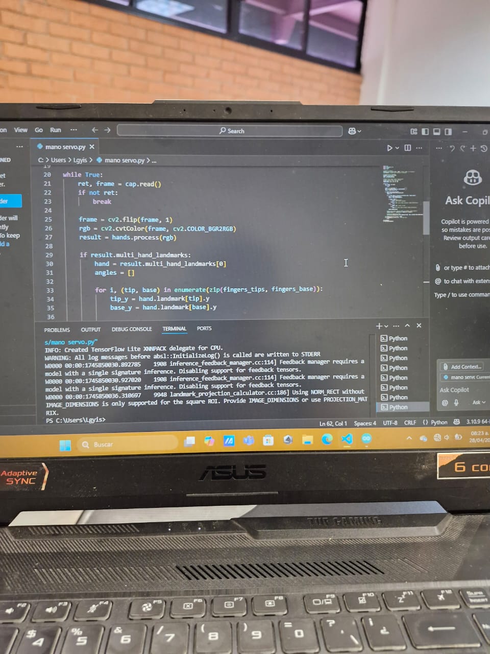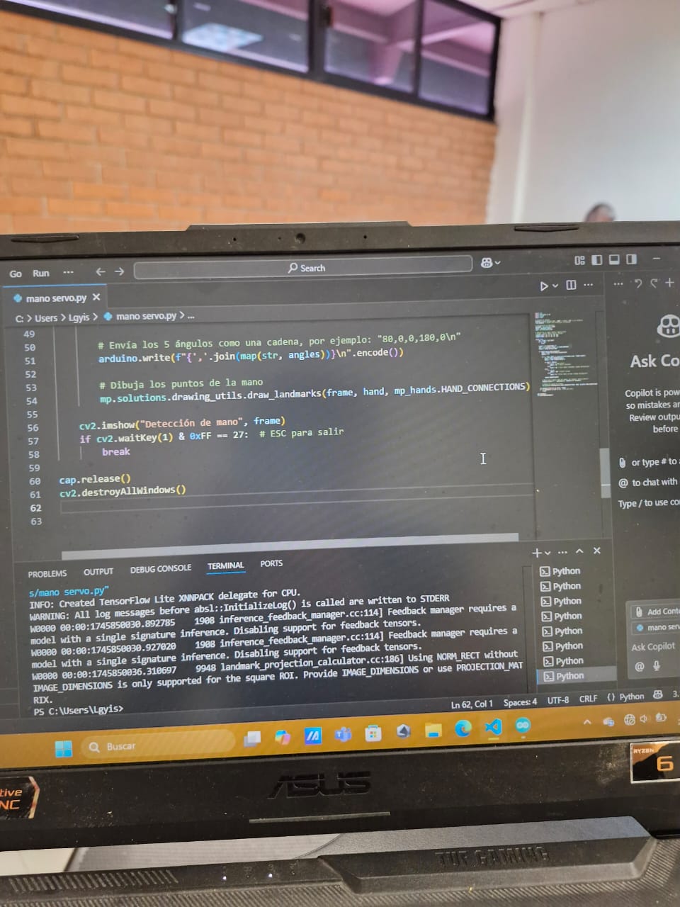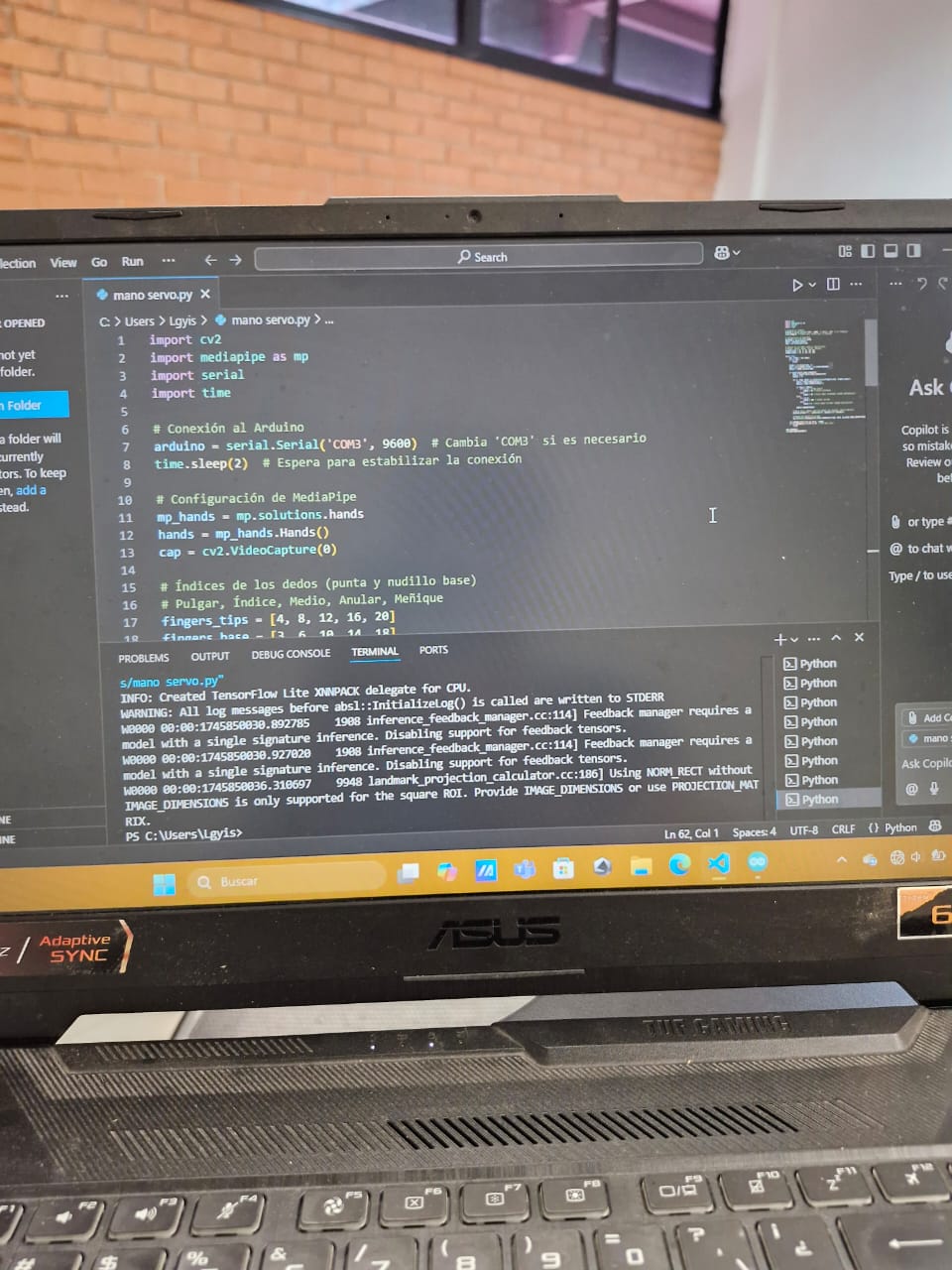 En este proyecto que realice fue conectar código Arduino con PYTHON atraves de librerías llamadas PySerial y otras que conectan con Google para la cámara y otro que sirve como interpretador de datos. Una vez escrito los códigos se cargan en sus programas para el caso de Arduino este se conecta a la placa Arduino y quedaría listo.